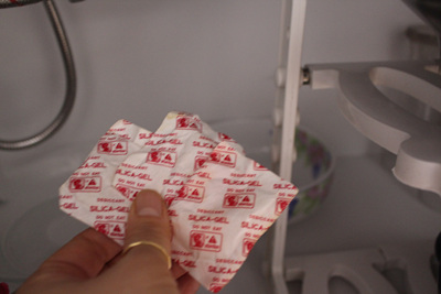 눅눅한 싱크대 주변은 실리카겔을 곳곳에 넣어 두었어요.
