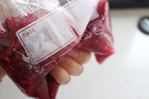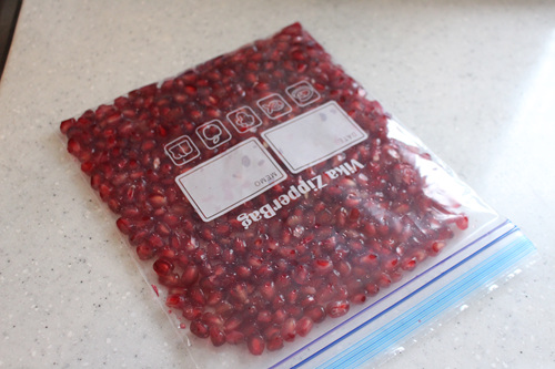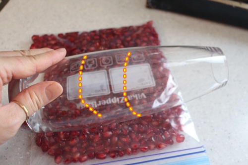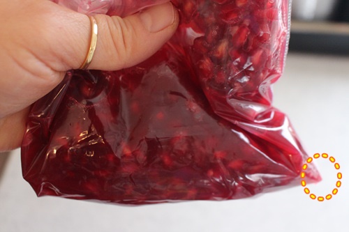 그래서 준비했습니다. 석류즙만 쏙~~~~빼서 먹는 법입니다. 지퍼백에 석류알을 넣어 준 뒤 공기를 뺀 뒤 지퍼를 꼭 닫아주세요.