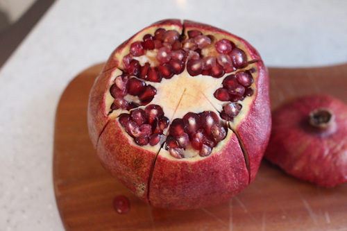 이 정도까지만 했으면 90% 석류 자르는 법 완성~ 이제 석류알을 쉽게 분리하는 법 보여 드릴께요..