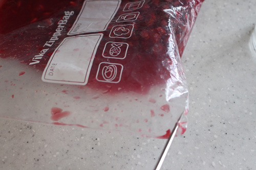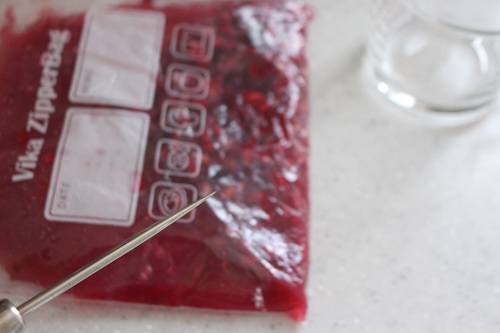 딱 적당하게 구멍을 잘 뚫었네요... 석류씨는 지퍼백에 그대로 남고 먹기 좋게 즙만 나왔습니다.