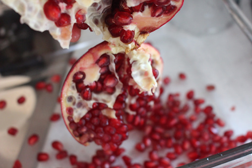 손으로 일일이 석류알을 분리하다 보면 손에 얼룩덜룩 빨간 즙이 묻어 나옵니다. 위생상 조금 안 좋아 보이기도 하고 손에 묻은 석류도 씻어야 하는 번거로움....