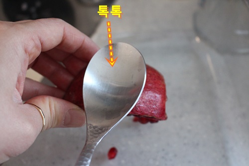 손에 묻지 않고 석류알을 분리하는 방법은 2가지인데요.. 숟가락으로 톡톡 쳐서 석류알을 분리하는 것과.....