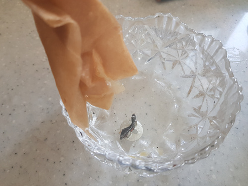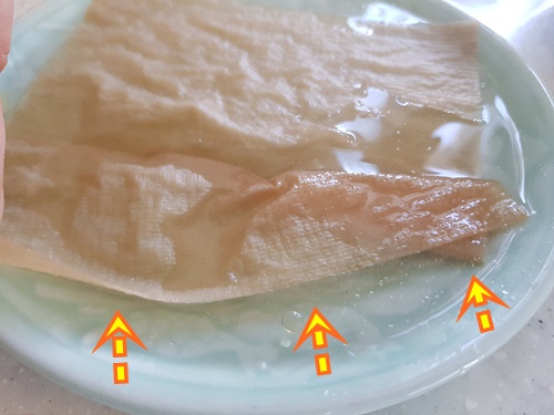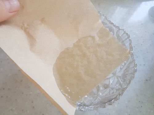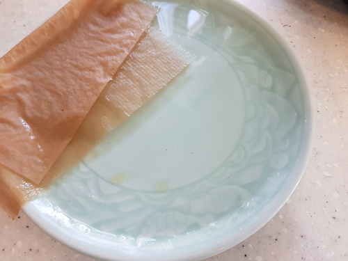 그 다음 티슈를 걷어내면 녹아서 둥둥 떠 있던 촛농이 제거됩니다.