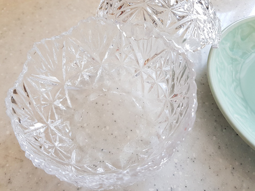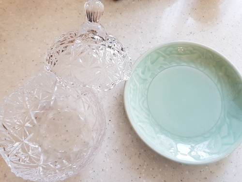 깨끗이 씻은 유리케이스와 접시입니다. 정말 깔끔하게 촛농이 없어졌죠.
