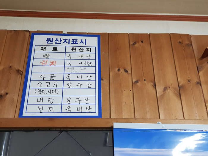 원산지 표기도 잘 되어 있습니다. 해장국에 들어가는 선지는 국내산이고 내장탕에 들어가는 내장과 양지, 사태는 호주산입니다. 그외 다 국내산으로 사용하고 있네요.