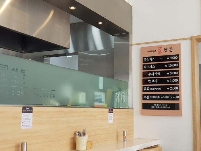 시간에 맞춰 도착하니 이미 많은 분들이 자리에 앉아 음식을 기다리고 있었습니다. 2명이 예약하면 등심까스, 치즈까스 하나씩 나옵니다. 가격도 제주도 음식점에 비하면 정말 착한 가격입니다. 물론 맛은 이미 골목식당에서 백종원 대표님에게 칭찬이 자자해 다 아실 듯 하고요.