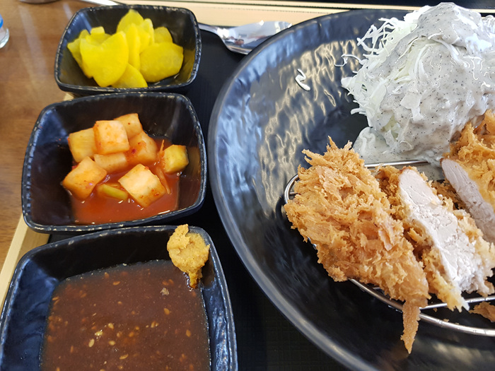 유난히 바삭하고 맛있어 보이는 비쥬얼입니다. 물론 맛을 보면 그 맛에 놀라기도 하지요. 식빵을 분쇄해 묻혀 직접 튀긴 것 같은데 엄청 까실했습니다. 고기는 말이 필요없이 촉촉하고 맛있더군요.