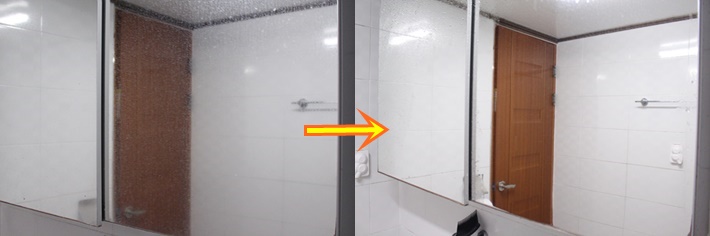 이제 본격적으로 욕실거울 닦아 볼께요.