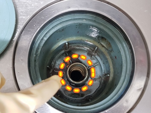 보통 싱크대 개수대 안쪽을 청소할때 요 부분 즉, 물빠지는 부분을 그냥 막지 않고 하는데요. 오늘은 이 부분을 막아서 청소할꺼예요. 사실 저도 요기 부분을 막은건 처음입니다. 생각만 하다 실천에 한번 옮기기로 했지요.