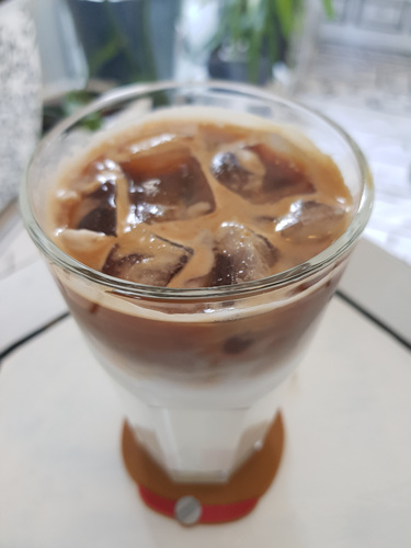 짜잔.... 한 번 먹으면 일반 아이스라떼는 잘 안 댕기게 만드는 아이스돌체라떼예요.. 아침에 마시면 변비에 탁월하다고 소문이 자자하니 한 번 만들어 드셔 보시는거 권합니다.