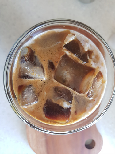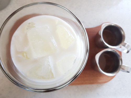 시원한 음료에 따뜻한 에스프레소를 그냥 붓는 것 보다 숟가락 뒷면을 이용해 에스프레소를 부으면 층이 생겨 보기에도 이쁩니다.