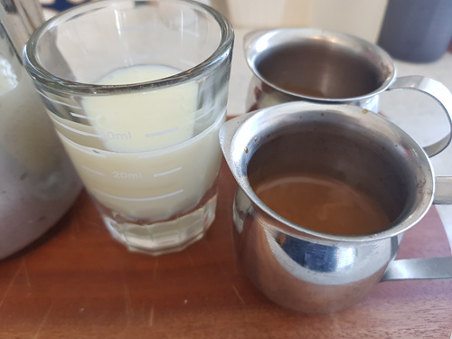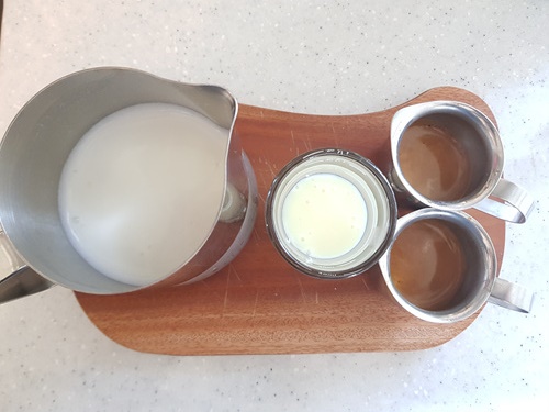 우유, 연유, 에스프레소를 먼저 준비했습니다.