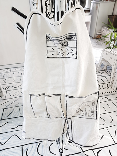 베이킹소다와 세제를 푼 물에 담근 후 약 30분 후 손세탁을 하거나 세탁망에 앞치마를 넣어 세탁기에 돌리면 쉽게 얼룩이 제거됩니다.
