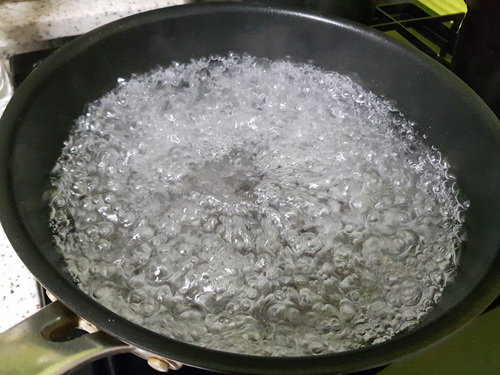 전 싱크대에서 나오는 온수가 아닌 물을 일부러 팔팔 끓였어요. 물의 온도가 높을수록 세척효과가 더 좋더라고요.