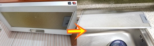 기름기 가득한 주방 후드 세척 전과 세척 후 비교 사진입니다. 사진으로만 봐도 차이가 확실히 나죠.. 요리를 자주 집에서 해 먹게 되는 요즘 이제 요리 후 주변 청소도 깨끗이 해 보아요~