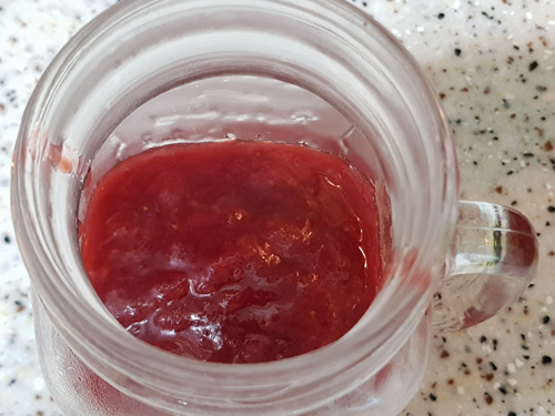 물을 그릇에 넣은 뒤 딸기잼을 조금 떨어 뜨려 보면 탁하고 퍼지면 아직 덜 된 상태입니다.