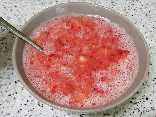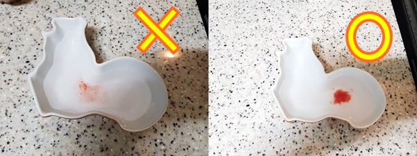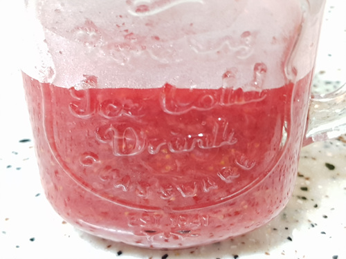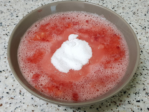 물을 그릇에 넣은 뒤 딸기잼을 조금 떨어 뜨려 보면 탁하고 퍼지면 아직 덜 된 상태입니다.