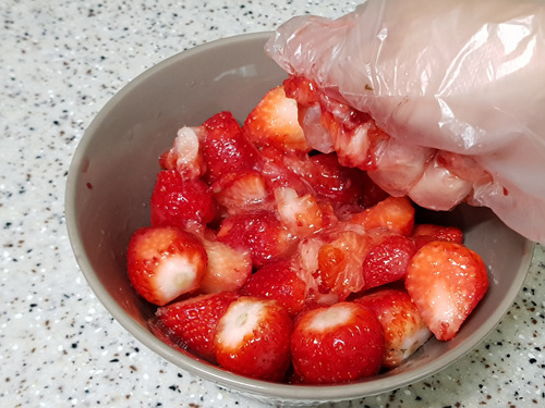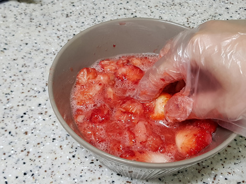 딸기잼 하기 전 손으로 일일이 주물러 딸기잼을 쉽고 빨리하기 위해 만들어 줬어요.