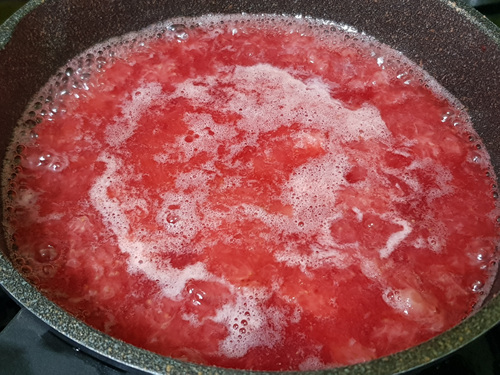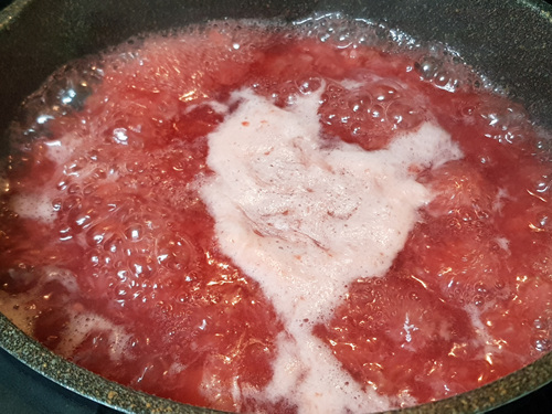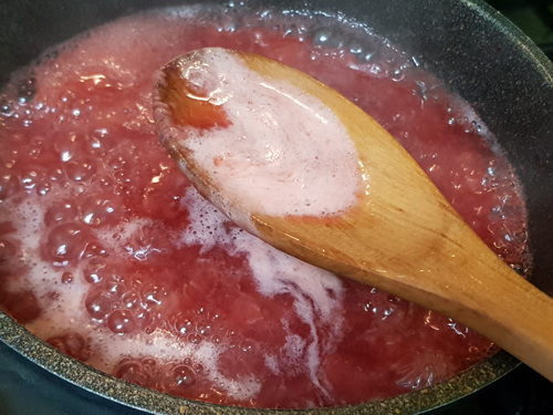 가스렌지로 할 경우엔 처음엔 강불 ~ 중불~ 약불 순으로 하는데 팔팔 끓을때 불을 줄인 뒤 거품을 걷어 내면서 불조절을 서서히 줄여가며 딸기잼을 졸이면 됩니다.