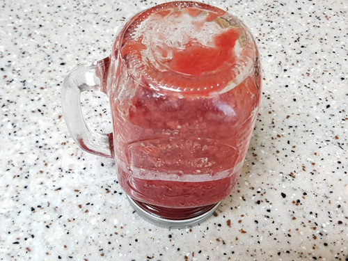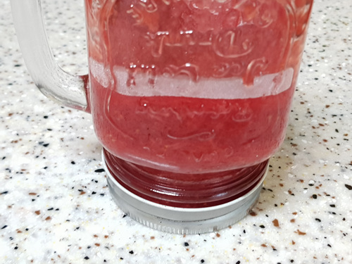 여기서 팁하나 더 들어갈께요. 딸기잼을 다 담았다면 뚜껑을 닫은 뒤 거꾸러 해 주면 압력으로 인해 진공상태가 됩니다.