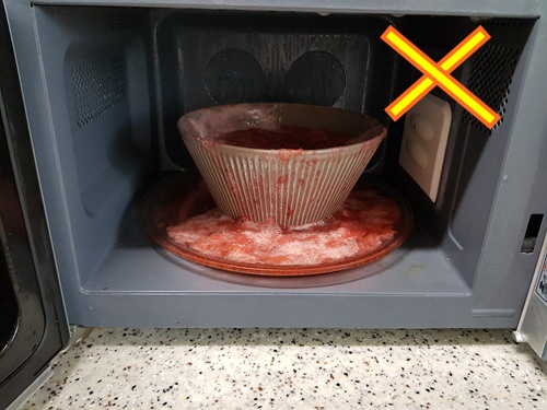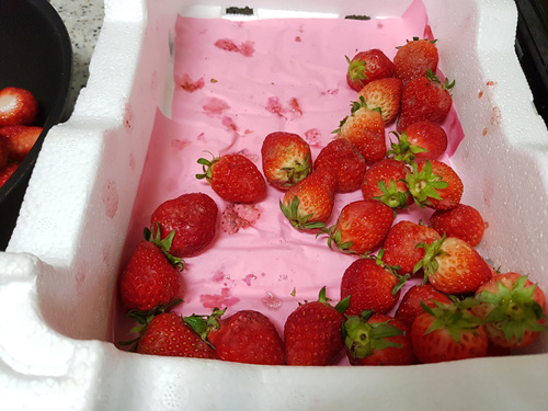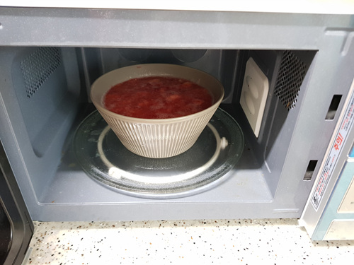 그릇에 너무 많은 딸기를 담은게 화근....... 만약 전자렌지로 하실 분은 딸기의 양이 그릇의 반 이하만담으시면 이렇게 넘치지 않을 것 같아요. ^^;;;;;;;