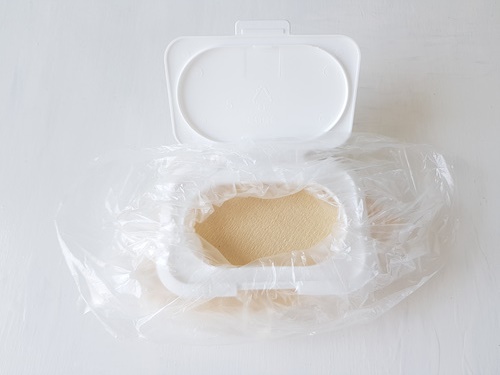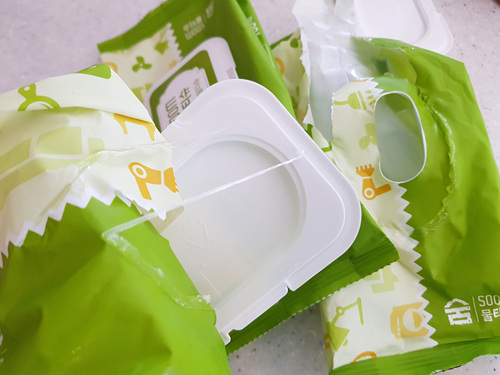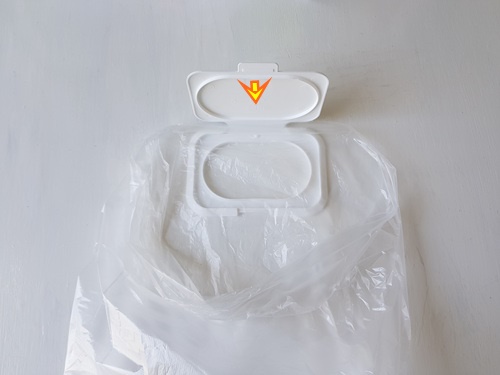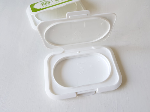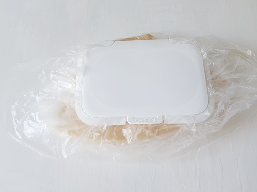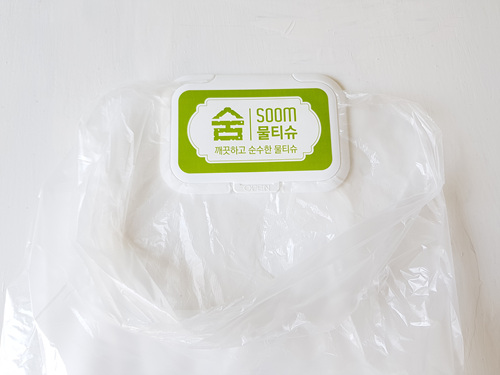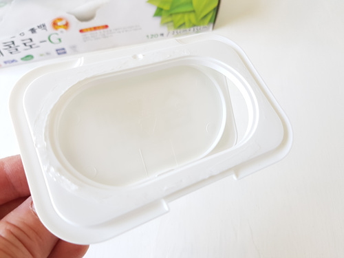 밀봉하는 방법은 비닐을 물티슈 뚜껑 안쪽으로 넣은 뒤 뚜껑을 닫아 주기만 하면 됩니다. 정말 간단하죠.