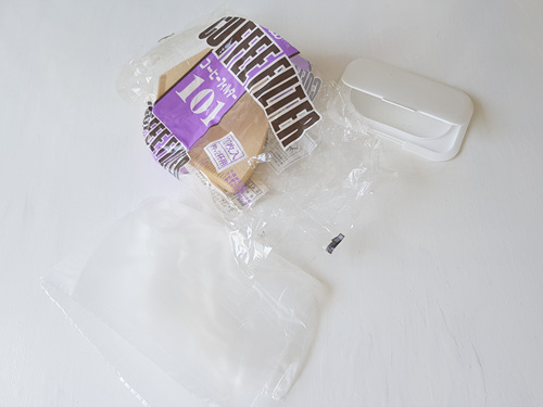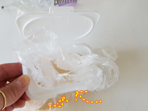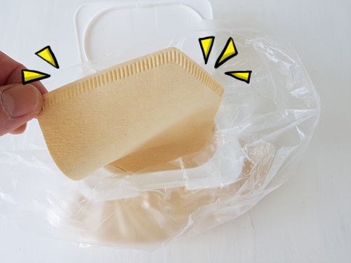 비닐봉지에 물건을 넣은 뒤 밀봉하고 싶을때가 있죠. 전 커피필터를 넣어 보관하는데요. 이때 물티슈 뚜껑을 활용했어요.