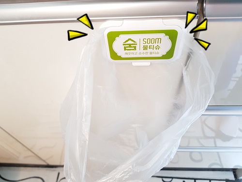 여기에 일반 쓰레기들을 버리면 됩니다. 쓰레기가 모이면 물티슈 뚜껑을 열어 비닐봉지만 버리면 되겠죠.