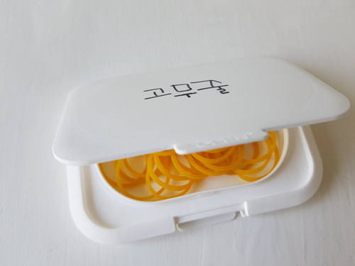 전 고무줄을 담아 뒀어요. 아이들이 있는 집에선 작은 실핀등을 넣어 두거나 압핀등을 넣어 두면 좋아요.