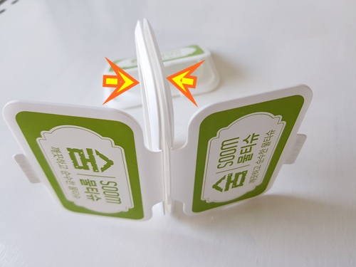 물티슈 뚜껑 2개를 마주보게 붙여 주세요. 접착력이 원래 있기때문에 잘 붙어요. 만약 잘 붙지 않을경우 양면 테이프로 붙여 주면 됩니다.