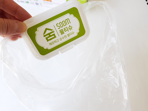 밀봉한 뒤 물티슈 뒷부분의 모습입니다. 깔끔하게 사용 가능하겠죠.