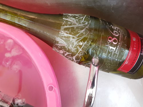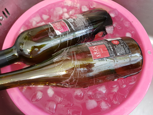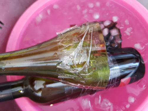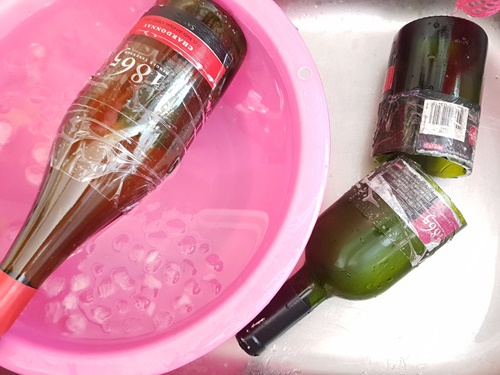 와인병에 칼로 금을 내었다면 이젠 준비할 것은 얼음물과 뜨거운물을 준비해 줍니다.
