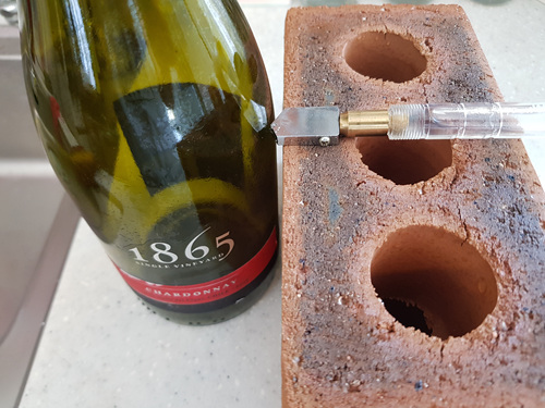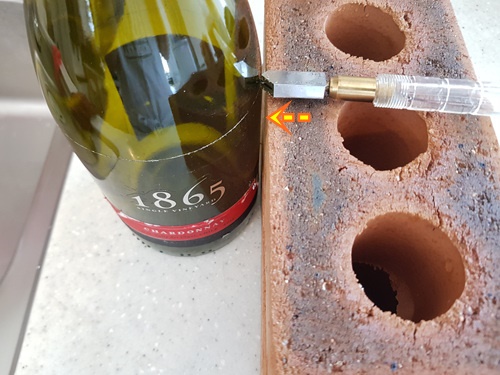 물론 와인병에 줄도 눈에 띄게 생기기 때문에 더 잘 잘리는 효과까지 있습니다. 대충 와인병에 금을 내면 나중에 잘 안 잘려요.