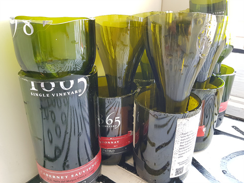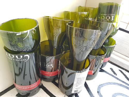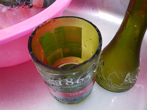 와인병 한 두개만 할까하다 생각보다 잘 되길래 와인병 몇 개 더 자르기로 했지요. ㅎㅎ