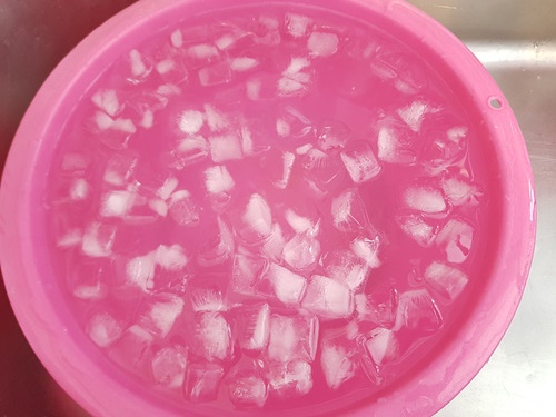 얼음물은 넓은 대야에 준비해 주고요. 뜨거운물은 주전자에 넣어주면 좋아요.