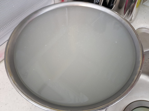 먼저 준비할 것이 있는데요. 그건 바로 쌀뜨물입니다. 쌀뜨물은 처음 헹굼한 물은 버리고 되도록이면 3번째 받아 놓은 쌀뜨물을 사용해 주세요.