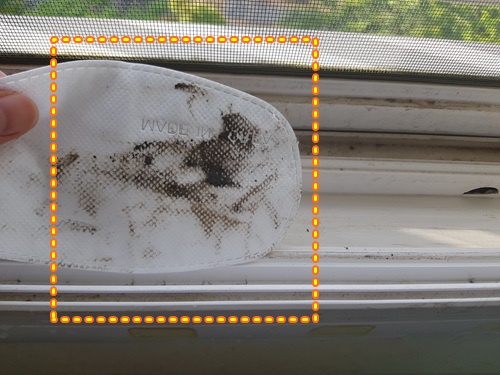 창틀이 깨끗이 닦인 만큼 마스크필터는 정말 더러워졌죠. 그만큼 잘 닦였다는 증거겠죠~