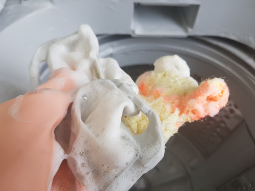 세제통과 거름망도 수세미를 이용해 닦았어요. 거품이 잘 나기 때문에 거름망의 때가 정말 잘 빠지더라고요.