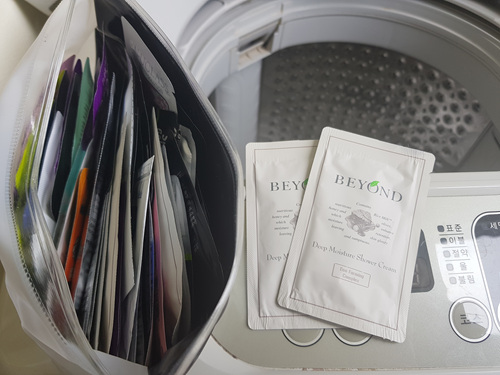 일단, 세탁기 내 보이는 곳부터 청소하기로..... 준비할 것은? 샴푸나 바디크랜저가 있으면 됩니다. 전 모아 두었던 1회 용품을 사용하기로 했어요. 여행을 2년 동안 가지 않으니 이것도 자연스럽게 그대로 방치가 되는 수준이네요. 뭐... 청소할 때 사용하면 되니 그것으로 만족하는 걸로~