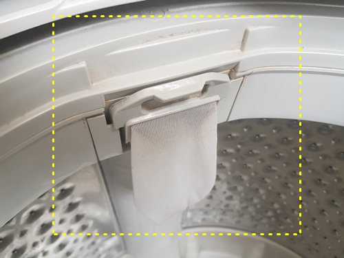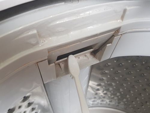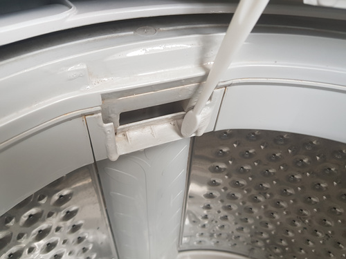 빨래를 하려다 눈에 띈 구석진 곳의 먼지가 많이 보여 빨래를 하기 전 세탁기 내부 청소 간단히 했습니다.