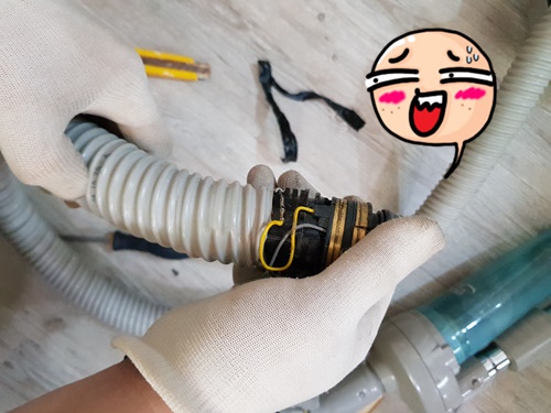 그렇게 남편은 다시 꼼꼼히 청소기 줄 연결 부분을 자세히 본 후 다시 작업 돌입...