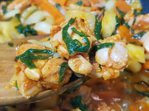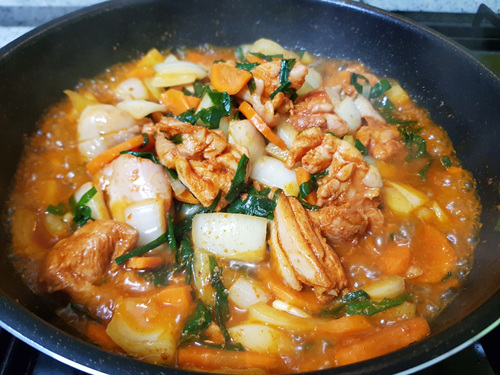 채소를 많이 넣으니 수분이 많이 생겨 전 수분이 적당히 없어질때까지 졸였어요.