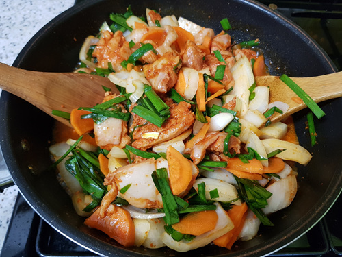 채소를 많이 넣으니 훨씬 더 풍미가 있어 좋았습니다. 그냥 포장된 내용물만 볶지 말고 꼭 채소를 넣어 조리해 드시는거 강추~