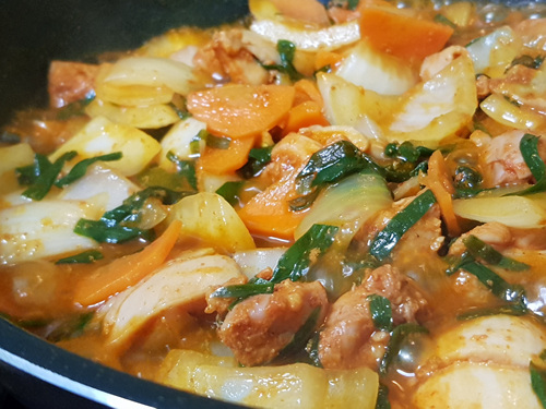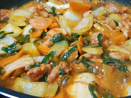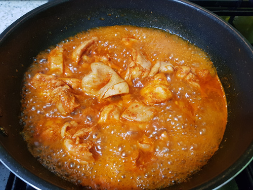 채소를 많이 넣으니 수분이 많이 생겨 전 수분이 적당히 없어질때까지 졸였어요.