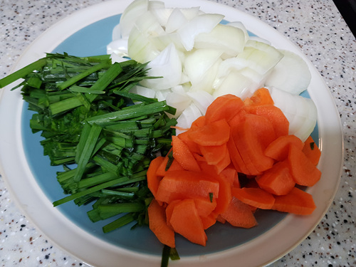 전 부추, 당근, 양파를 넣어 조리해 먹기로 했어요.