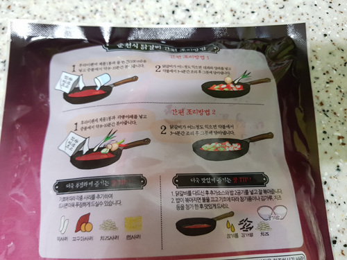 양념된 닭갈비라 후라이팬에 그냥 간편하게 조리하면 됩니다. 밥 볶아 먹는 소스도 따로 들어 있어 좋더군요.