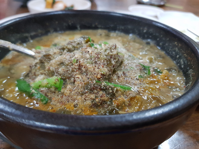 상 위에 있는 들깨가루를 넣으면 더 고소하고 맛있습니다. 물론 미꾸라지 특유의 비린맛도 나지 않아 너무 잘 먹고 있는 추어탕이지요. 어쩌다 한 번씩 들리긴 하지만 여전히 친절하고 맛있습니다.