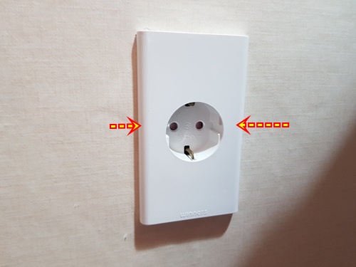 이렇게 가로로 되어 콘센트 구멍이 되어 있는 것은 가로로 점을 콕찍어 표시해 두는 것입니다.