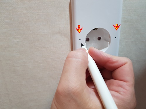 이렇게 가로로 되어 콘센트 구멍이 되어 있는 것은 가로로 점을 콕찍어 표시해 두는 것입니다.