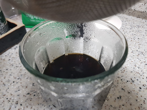 맛있게 내려진 드립커피....빨리 시원하게 마시고 싶어 찬물에 잠깐 담궈 두었어요. 얼음이 많았다면 몇 개 넣어서 담궈 두는건데.... 여름철엔 집에 얼음도 많이 얼려둬야겠다는 생각이....